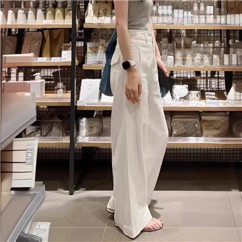 白色窄版直筒裤女薄2025夏季新款垂感显瘦高腰大码西装休闲长裤子