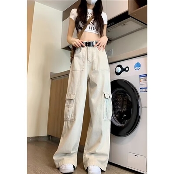 白色裤子女秋冬美式直筒工装裤高腰垂感显瘦宽松小个子窄版阔腿裤