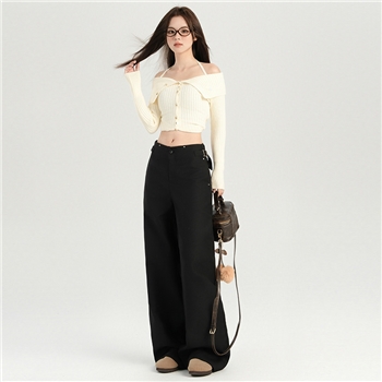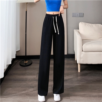 春秋冬季高腰直筒阔腿裤高弹垂感松紧腰女裤