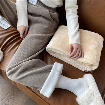 雪尼尔加绒裤子女秋冬季阔腿裤灯芯绒加厚休闲保暖直筒羊羔绒女裤