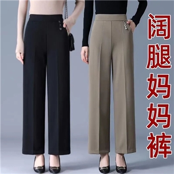 中老年妈妈裤子2024春夏薄款女士高腰休闲阔腿裤宽松秋冬直筒长裤