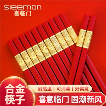 新年红色合金筷婚庆喜宴乔迁防霉耐高温防滑筷子家用红色金福筷子