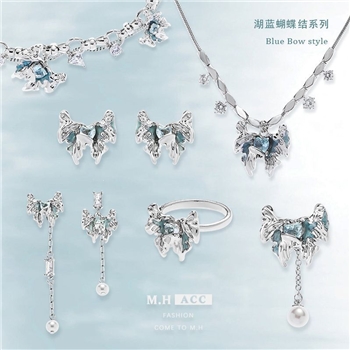 ins清冷感湖蓝褶皱蝴蝶耳环女925银针高级感耳饰时尚个性耳坠