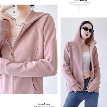 新款女士时尚拉链秋季运动百搭卫衣外套简约帽衫秋冬女装设计感女