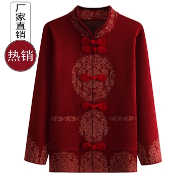 奶奶装春秋外套女老年人春装70岁80岁针织衫开衫妈妈唐装上衣冬装
